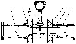 34 實用新型 帶有變徑整流器的流量測量管 本實用新型是一種帶有變徑整流器的流量測量管,其中,上游側部件包括一個變徑整流器,下游側部件包括一個與測量儀表公稱口徑相同的同徑管。變徑整流器入口連接一個上游側測量管,同徑管連接一個下游側測量管。可有效消除測量儀表出口處的流體漩渦,提高測量精度,大道改善小流量測量的目的。同時可大大降低對上游側直管道長度要求,量程比提高,在管路的上游出現彎道的情況下可有效提高測量的精度。