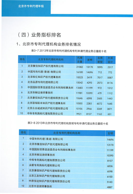 北京市知識產(chǎn)權(quán)局每年發(fā)布專利代理年報,從全市專利代理機(jī)構(gòu)整體情況、業(yè)務(wù)經(jīng)營情況、專利代理人培訓(xùn)、資格考試情況以及行業(yè)大事記等方面展示北京專利代理行業(yè)的整體面貌和發(fā)展動態(tài)。年報數(shù)據(jù)均來源于國家知識產(chǎn)權(quán)局公開的機(jī)構(gòu)情況、國家知識產(chǎn)權(quán)局條約法規(guī)司編制的《專利代理簡訊》、專利代理機(jī)構(gòu)報送的年檢數(shù)據(jù)以及北京市專利申請及授權(quán)數(shù)據(jù)。