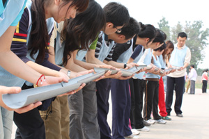 遠離了喧囂的市區,集佳同事們一路歡聲笑語,開始了這次“拓展”之旅。傍晚時分,我們來到了培訓基地,在培訓師的帶領下員工們打破部門界限分成了幾支隊伍,當各隊隊長帶領隊員們展示他們富有創意的隊名和口號、合唱鼓舞士氣的隊歌時,此起彼伏的掌聲和喝彩聲已經把我們提前帶入了挖掘潛力、挑戰自我的氣氛中。