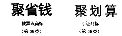 商標(biāo)局經(jīng)審理認(rèn)為:被異議商標(biāo)“聚省錢”和引證商標(biāo)“聚劃算”兩者的含義無(wú)明顯差異,已經(jīng)構(gòu)成了類似服務(wù)上的近似商標(biāo),對(duì)被異議商標(biāo)不予核準(zhǔn)注冊(cè)。