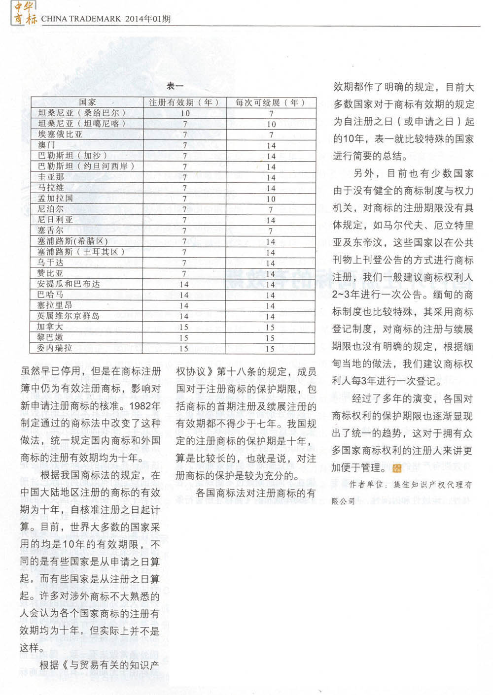 集佳代理人文章《國內外注冊商標的有效期》在《中華商標》發表