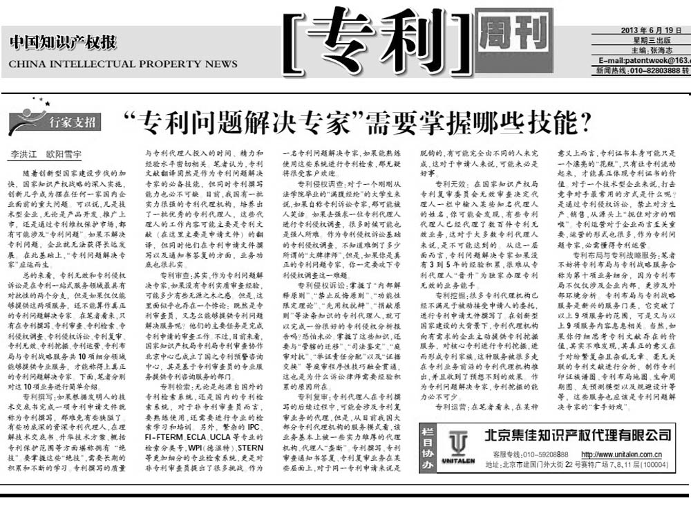 《中國知識產權報》:“專利問題解決專家”需要掌握哪些技能?