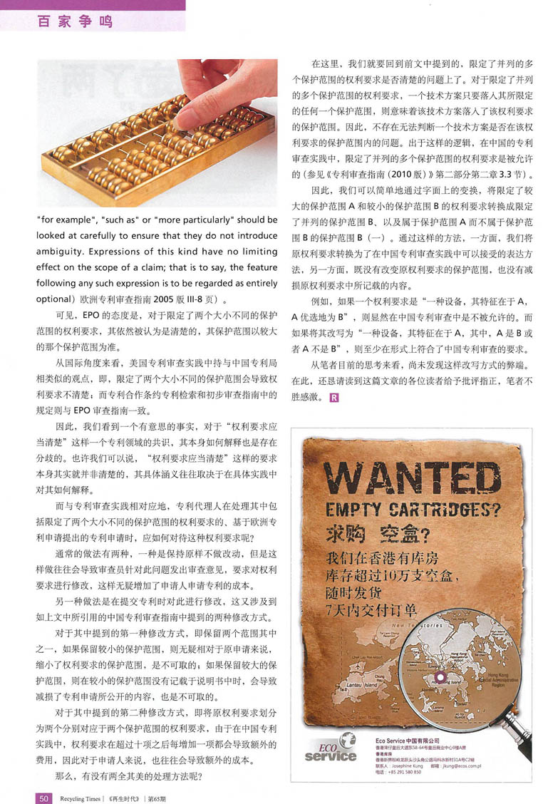 《再生時代》:關于權利要求中“限定了兩個大小不同的保護范圍”問題的探討