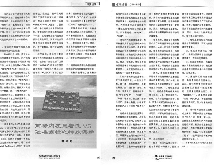《中華商標》:商標內在顯著性VS馳名商標之特殊保護