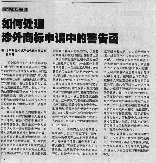 《國際商報》:如何處理涉外商標申請中的警告函