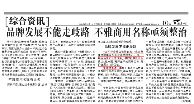 《福州日報》:品牌發展不能走歧路 不雅商用名稱亟待整治