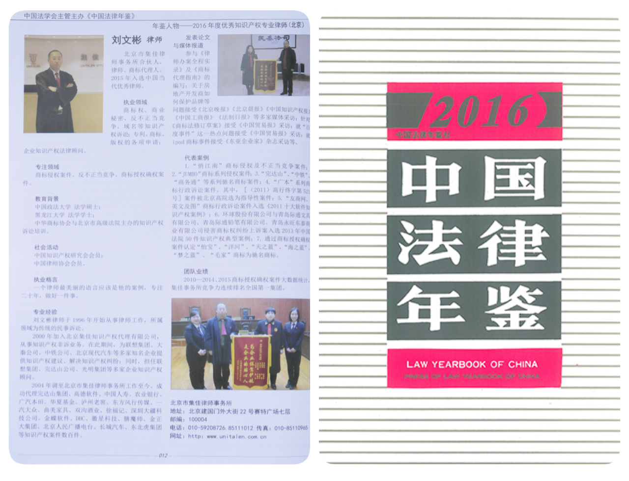 集佳劉文彬律師入選《2016中國法律年鑒》年鑒人物