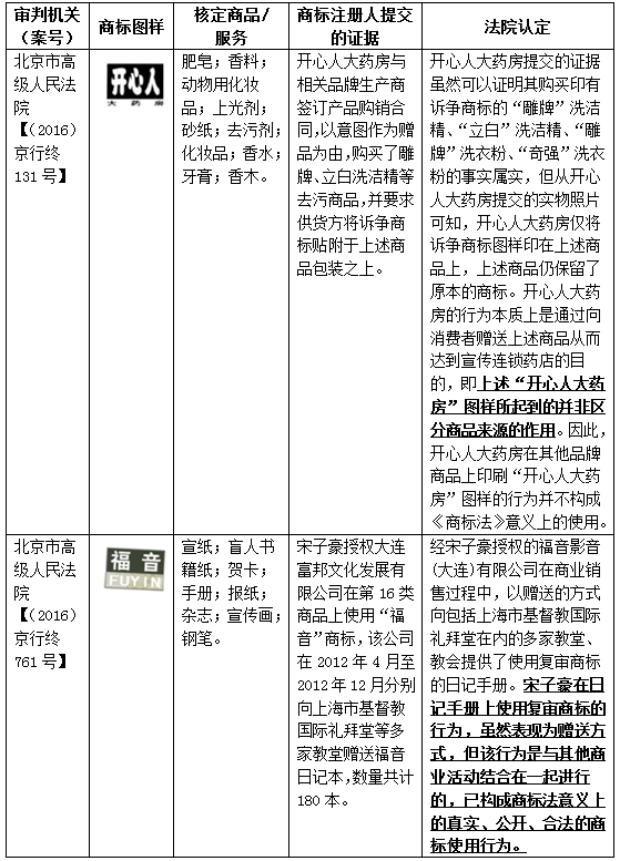 既然國知局刪除了上述規定,說明將商標使用在“贈品”上是否構成商標法意義上的商標使用,就需要個案認定。當前國知局對“贈品”的裁判標準可以通過以下案例窺見一斑: