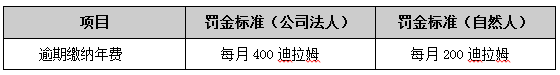 有關于年費繳納罰金標準,見下表: