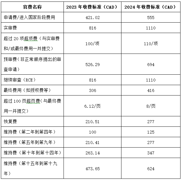 2023年6月21日,加拿大專利規(guī)則修正案發(fā)布,該修正案調整了小實體的定義,并對商標、專利和外觀設計的官費費用進行了上調。據(jù)悉,該修改案于2024年1月1日生效。