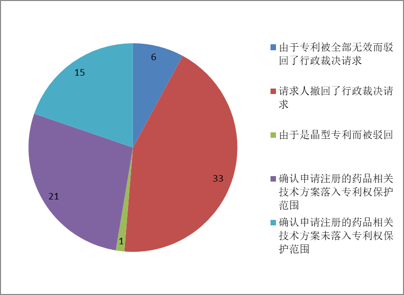 這里統(tǒng)計(jì)的僅是做出了確認(rèn)申請注冊的藥品相關(guān)技術(shù)方案是否落入專利權(quán)保護(hù)范圍結(jié)論的裁決,其他案件無法統(tǒng)計(jì)。