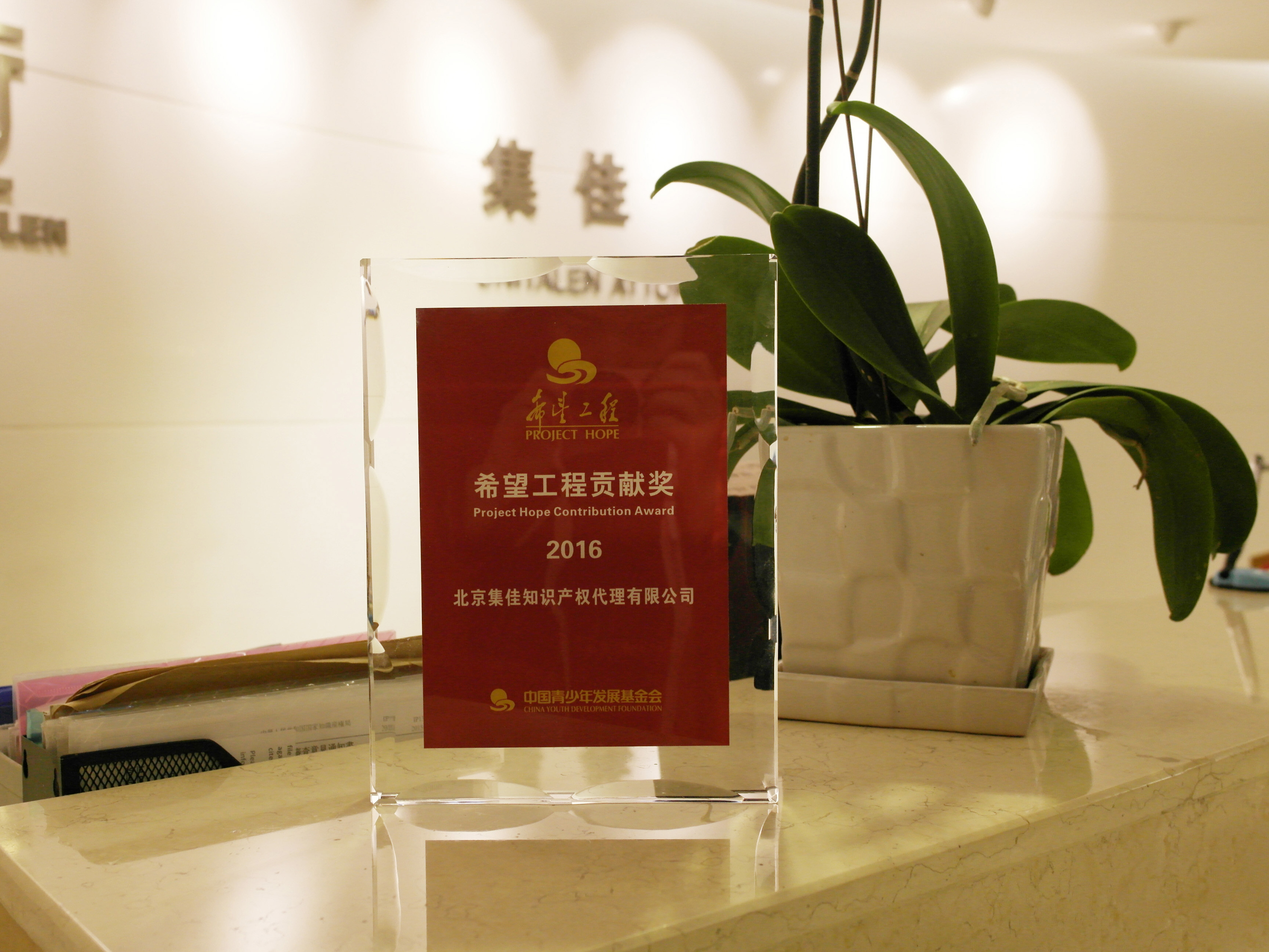 日前,中國(guó)青少年發(fā)展基金會(huì)向北京集佳知識(shí)產(chǎn)權(quán)代理有限公司頒發(fā)了“希望工程2016貢獻(xiàn)獎(jiǎng)”,以表彰集佳在剛剛過(guò)去的2016年,對(duì)貧困地區(qū)兒童教育的愛(ài)心捐助和對(duì)國(guó)家希望工程事業(yè)的巨大支持。此外,青基會(huì)在《中國(guó)青年報(bào)》刊發(fā)整版鳴謝,在新年到來(lái)之際,對(duì)奔馳、國(guó)開(kāi)行、可口可樂(lè)、集佳等近90家單位和合作方致以衷心的感謝。