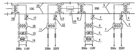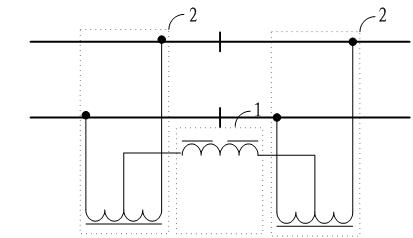 參見圖1所示,示出了權(quán)利要求1所要求保護的技術(shù)方案的示意圖,其中1代表安全型回流電抗器,2代表扼流變壓器,安全型回流電抗器串聯(lián)連接在設(shè)置于機械絕緣節(jié)兩端的相鄰所述扼流變壓器的橫連中心線處,設(shè)置安全型回流電抗器的目的是保證音頻制式軌道電路的斷軌檢查。