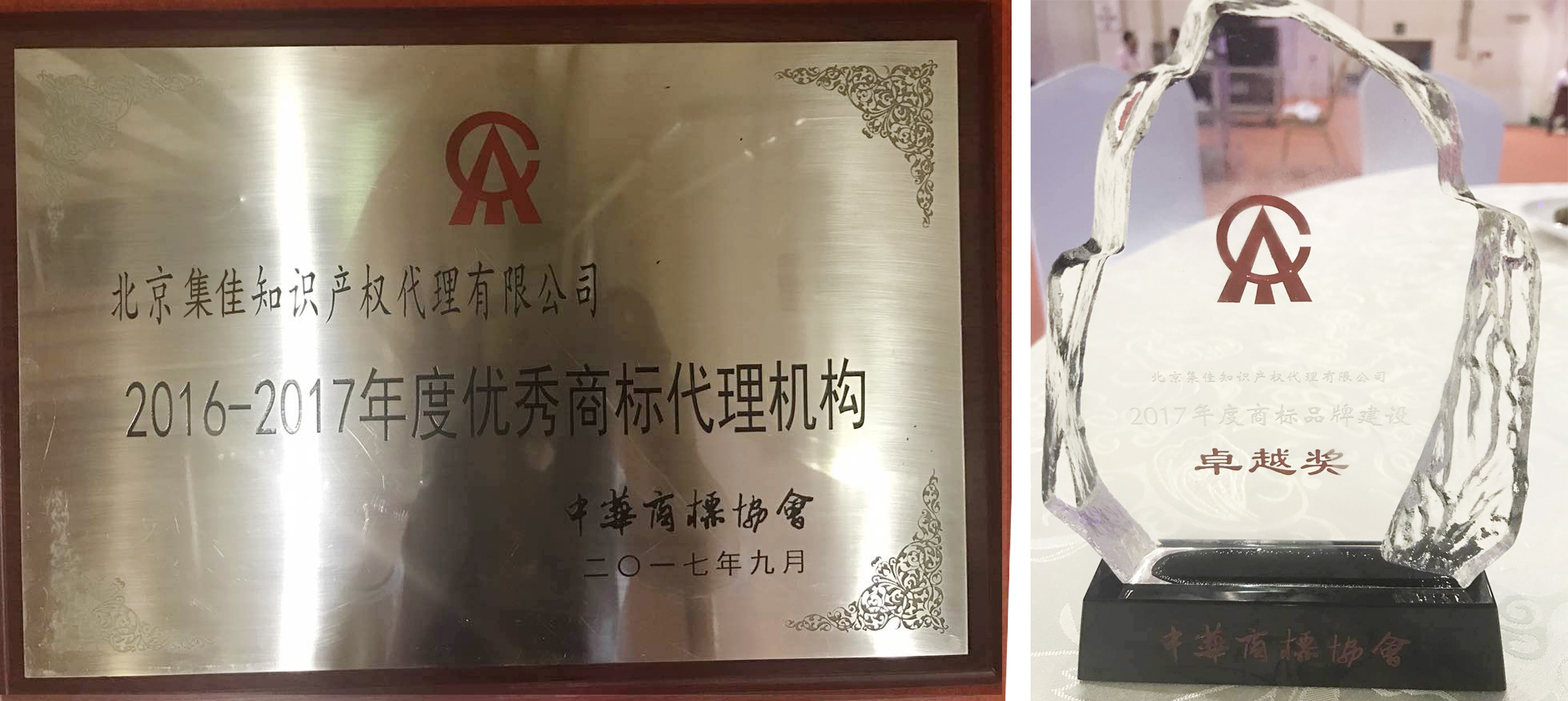 ▲北京集佳知識產權代理有限公司榮獲“2017年度商標品牌建設卓越獎”