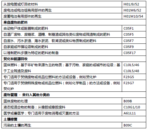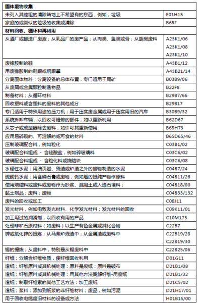 表1 固廢領域的IPC分類