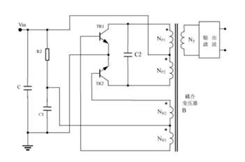 假設,有一發明專利(下稱假想專利)的名稱是“一種自激推挽式變換器”,其主要發明點是在兩個三極管的集電極之間連接“消除推挽三極管在上電時因特征頻率過高而產生正弦振蕩的高頻自激抑制電路”,主要實現方式如圖1所示在兩個三極管TR1和TR2的集電極之間連接電容C2。涉案專利所提出的技術問題是“上電時出現高頻振蕩,可能損壞三極管”,專利權人認為,發現上電時存在高頻振蕩是發明人利用特殊方式首次發現的技術問題,現有技術均未發現該技術問題,發明人的創造性貢獻就是發現了該技術問題。