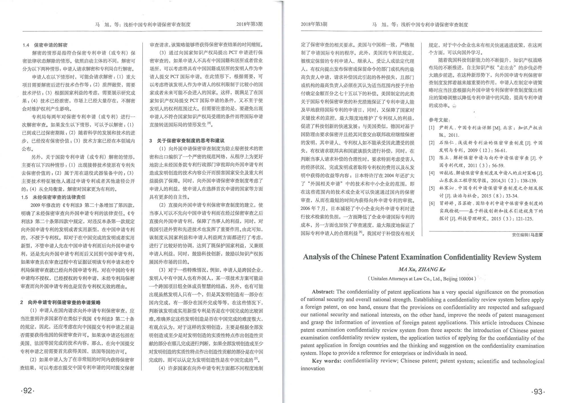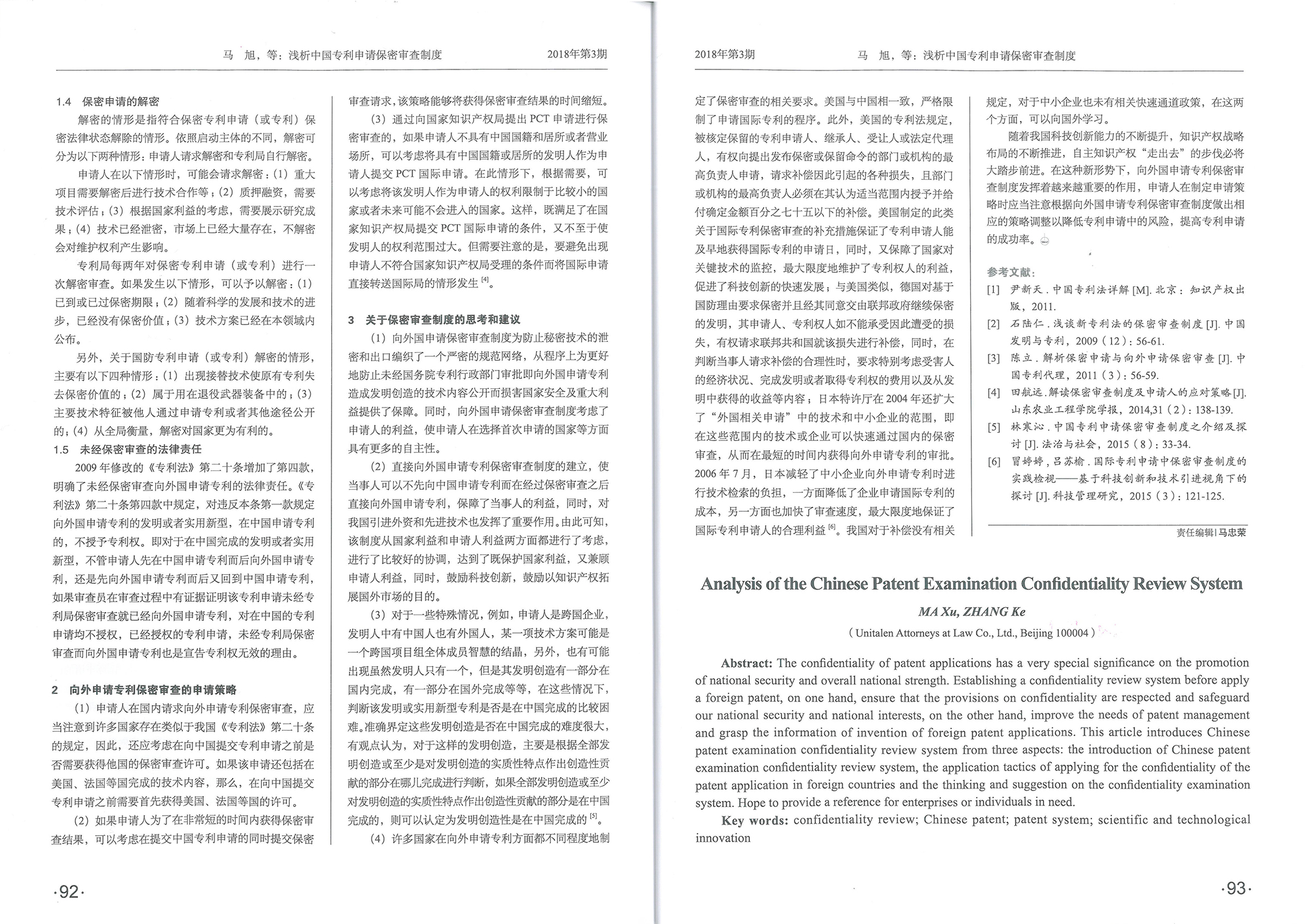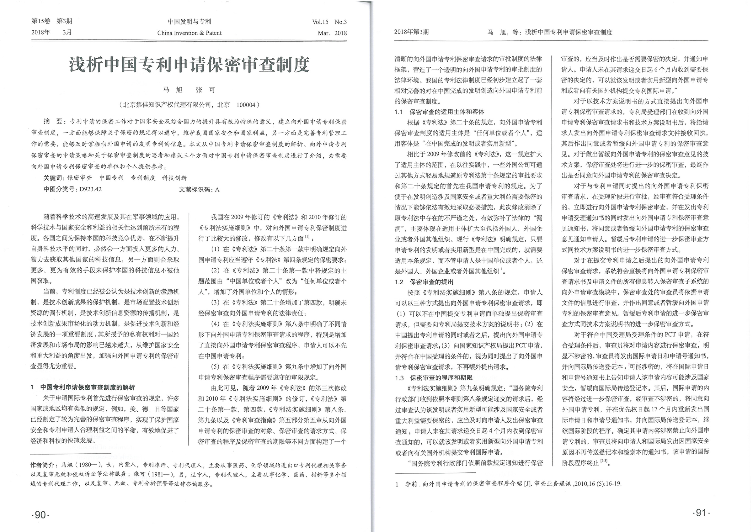 集佳文章《淺析中國專利申請保密審查制度》在《發明與專利》發表