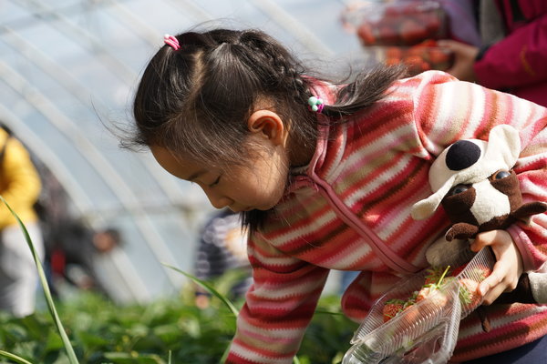 一頓豐盛的午餐之后,就到了快樂的采摘環節。無論是辛勤的植樹勞動,還是親手采摘甜美的草莓,集佳的寶寶們與父母一起動手參與活動,不僅體驗了親子活動的愉悅,更是親近自然、感受自然,體驗到了勞動帶來的收獲和快樂,寶寶們的臉上都掛滿開心的笑容~~