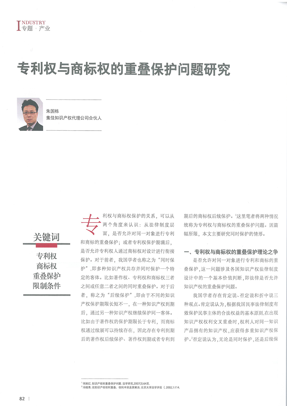 集佳文章《專利權與商標權的重疊保護問題研究》在《中國知識產權》發表