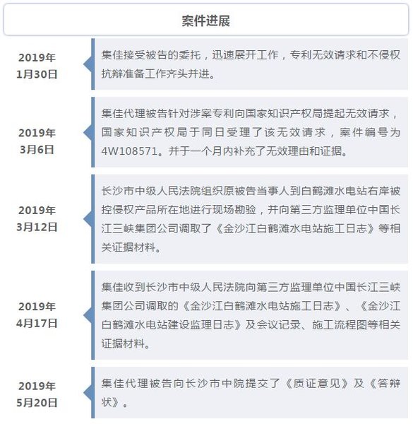 近日,在白鶴灘水電站閘門門槽施工方法及裝置發(fā)明專利侵權案中,集佳代理被告北京卓良模板有限公司在專利無效案件和專利侵權應訴案件中取得了全面勝利!本案是適用專利法第26條第3、4款成功無效發(fā)明專利權的典型案例。