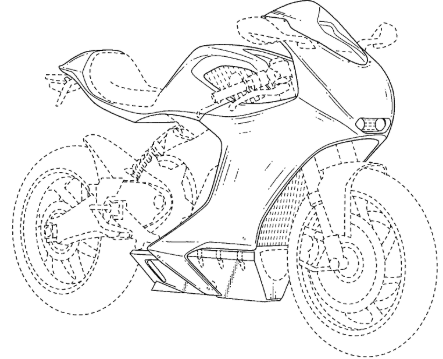 在線條圖中局部外觀設計以實線和虛線表示,比如下方圖1所示的摩托車,其保護范圍由實線決定,虛線表示不保護的部分。虛線的線寬需小于實線的線寬。