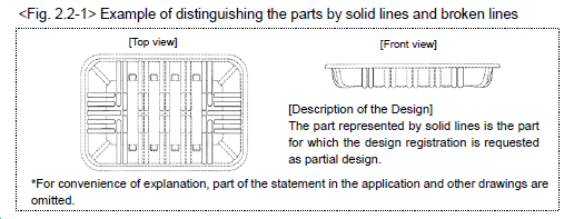為了表達要求保護的局部外觀設計,可以借助于虛線和實線,或者可以使用不同的色塊,或者用點劃線來表示分界線。此外,日本還規定在外觀設計說明中通過文字明確請求保護的部分,比如指出實線所示的部分是請求保護的局部外觀設計,或色塊之外的其他部分是請求保護的局部外觀設計。