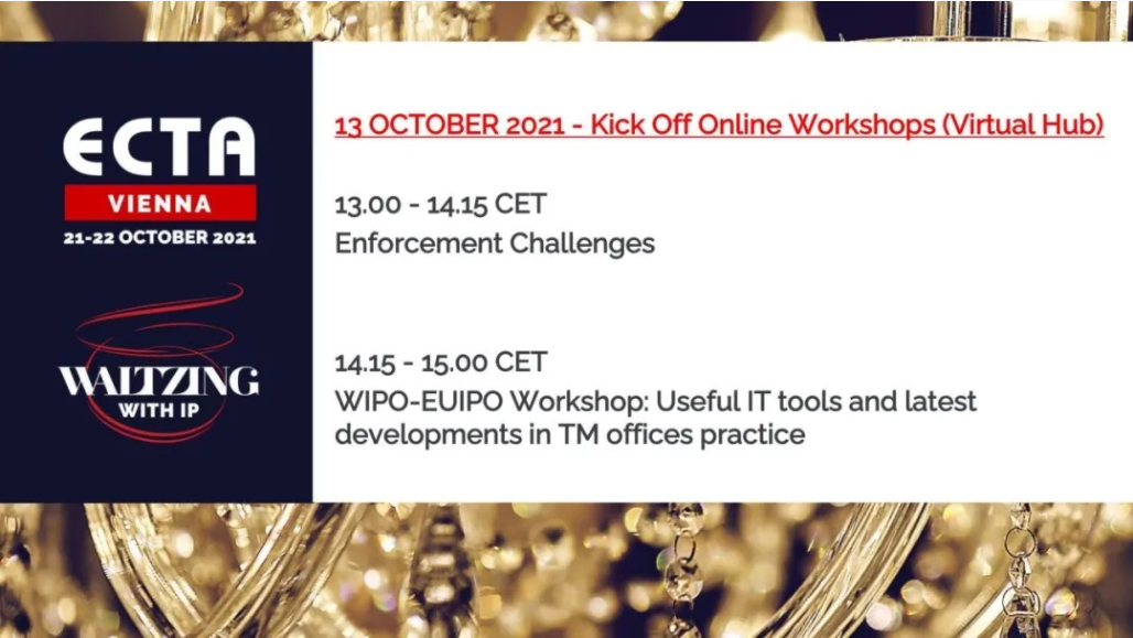歐洲商標協會(ECTA)第39屆年會“與IP共舞”將于2021年10月21-22日在維也納舉行。為了重現ECTA年會的啟動慣例,10月13日,ECTA在線舉行了年會例行的“周三研討會”——“商標保護挑戰研討會”與“WIPO-EUIPO研討會”,這也是年會“重要會議包”內容之一。集佳合伙人趙雷律師應邀參加商標權保護挑戰的主題討論,與來自比利時的前ECTA主席、Lydian事務所的高級合伙人Annick,美國Smith, Gambrell & Russel事務所的高級合伙人Jim,以及毛里求斯IPvocate事務所的Marius等行業專家共同探討商標權人在全球各地商標權保護的挑戰與對策。