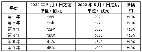 德國補充保護證書(SPC)年費官費調(diào)整具體如下: