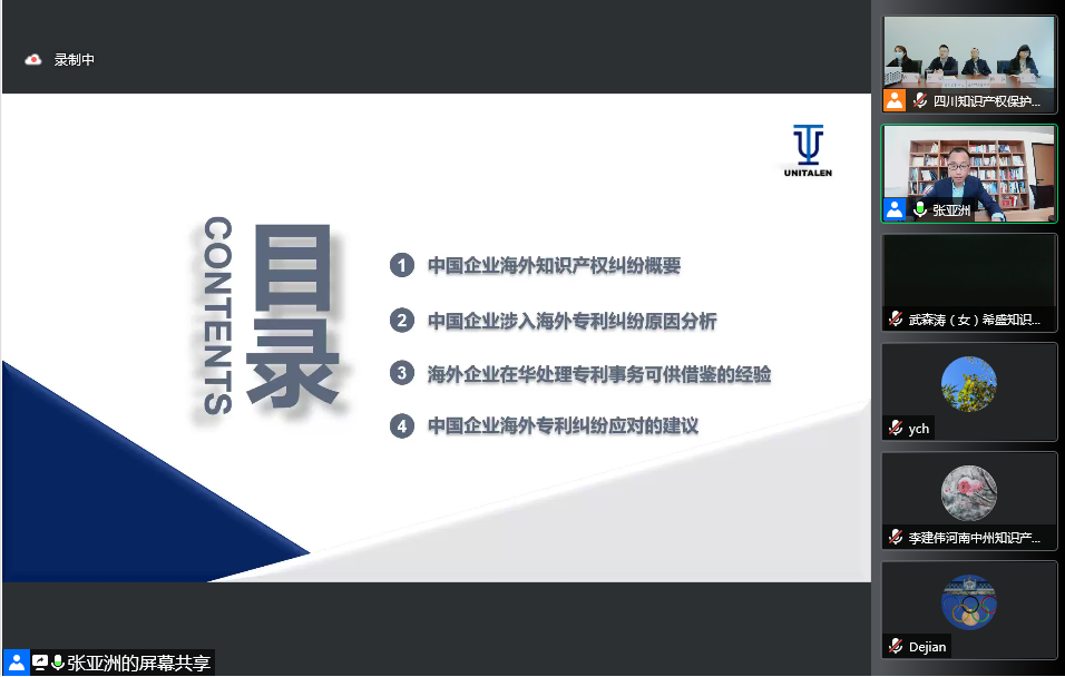中國企業如何有效應對海外專利糾紛專題培訓線上分享會成功舉辦