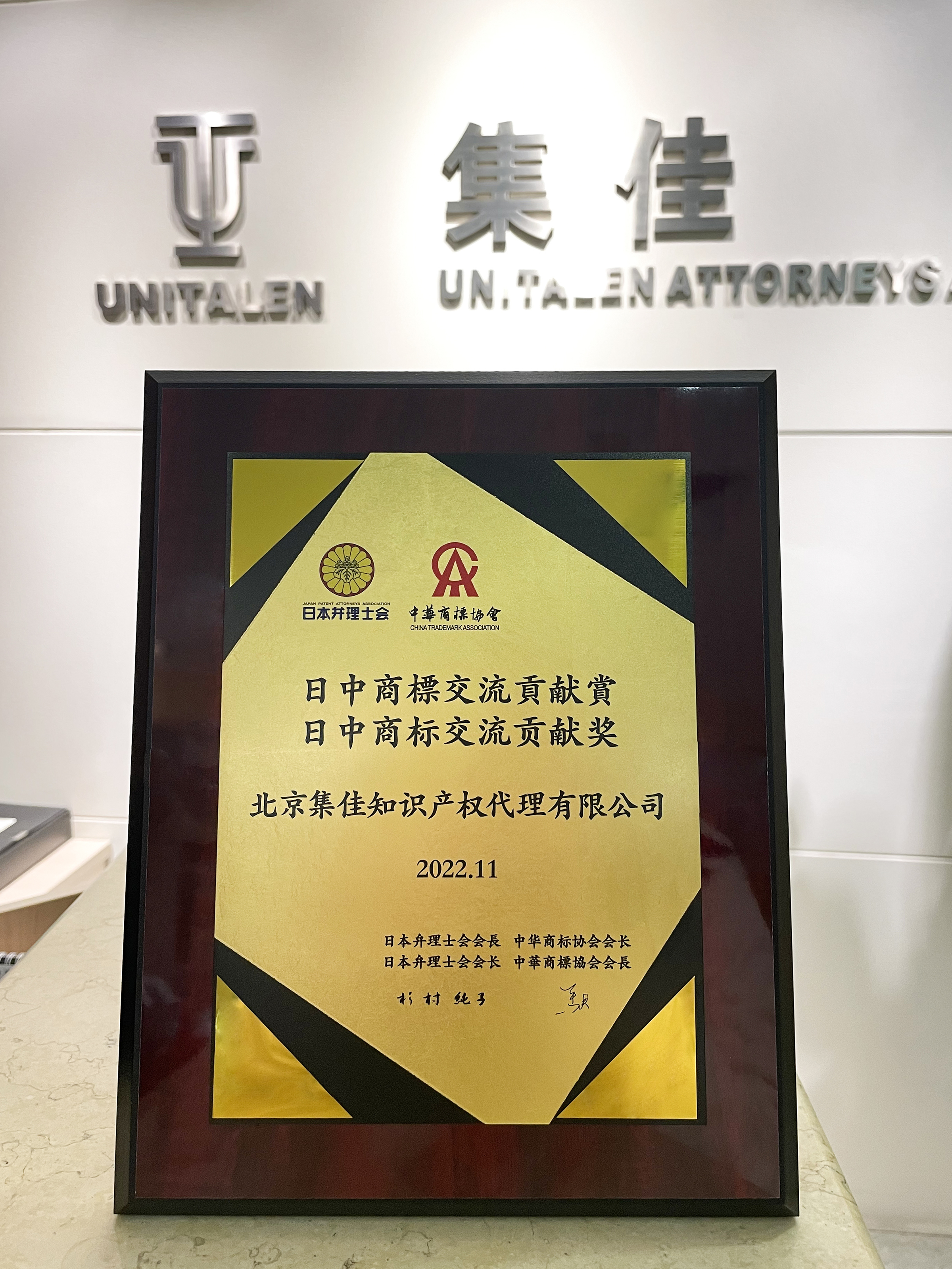 2022年11月11日,“中華商標(biāo)協(xié)會(huì)(CTA)&日本弁理士會(huì)(JPAA)合作二十周年紀(jì)念活動(dòng)”在北京和日本東京以視頻會(huì)議形式成功舉辦。集佳于澤輝所長(zhǎng)作為“中日商標(biāo)交流貢獻(xiàn)獎(jiǎng)”獲獎(jiǎng)單位代表受邀參加本次活動(dòng)。
