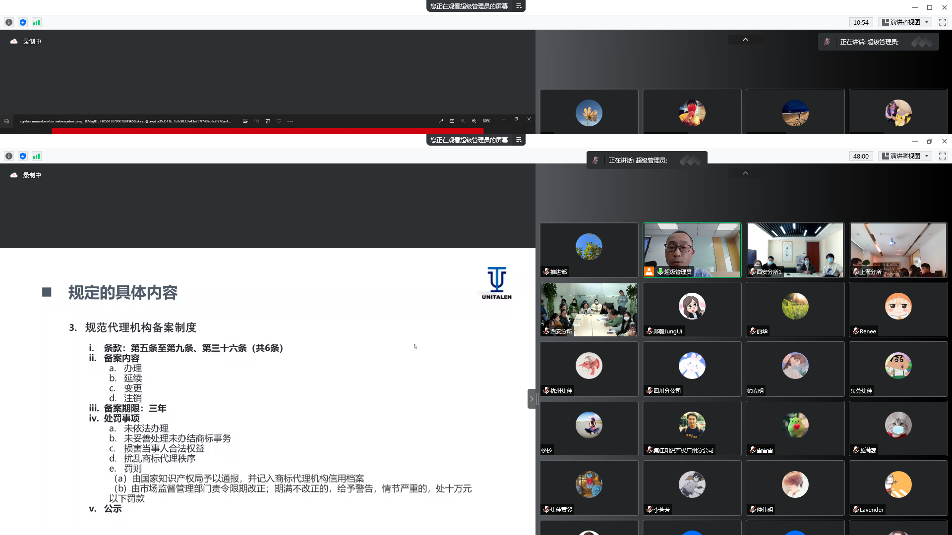 2022年11月15日下午,在于澤輝所長的帶領下,集佳組織全體員工認真學習《商標代理監督管理規定》,集佳各分所與辦事處同事通過視頻會議形式一起參加培訓并積極參與討論。