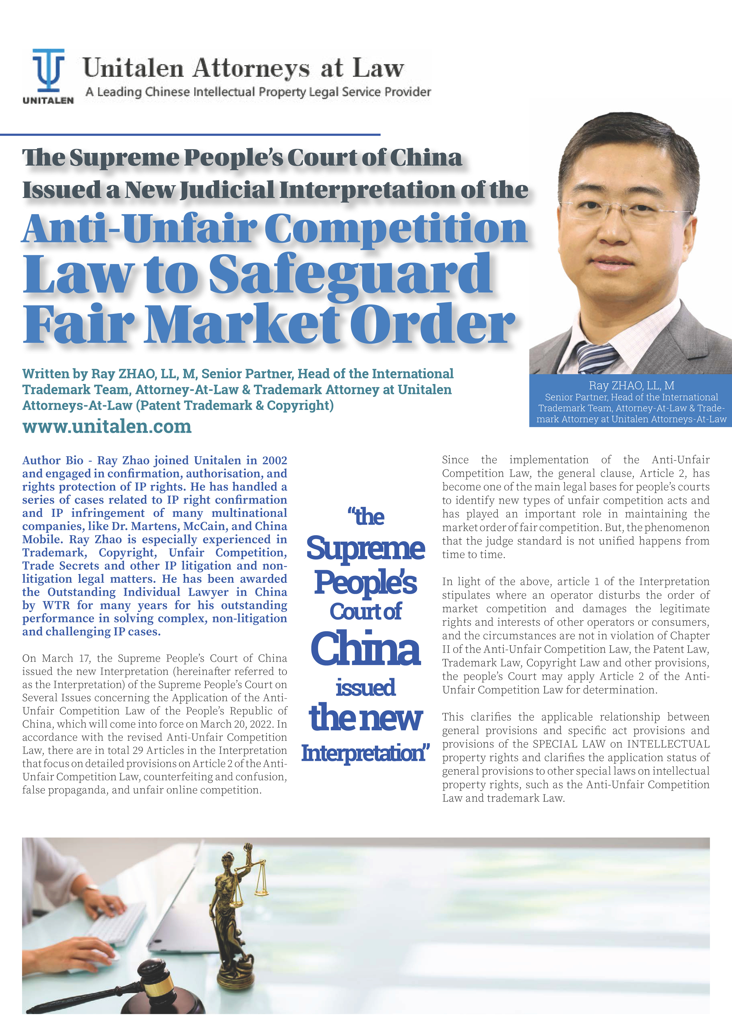 集佳合伙人趙雷律師文章《The Supreme People's Court of China Issued a New Judicial Interpretation of the Anti-Unfair Competition Law to Safeguard Fair Market Order》在《The Global IP Matrix Issue 13》發表