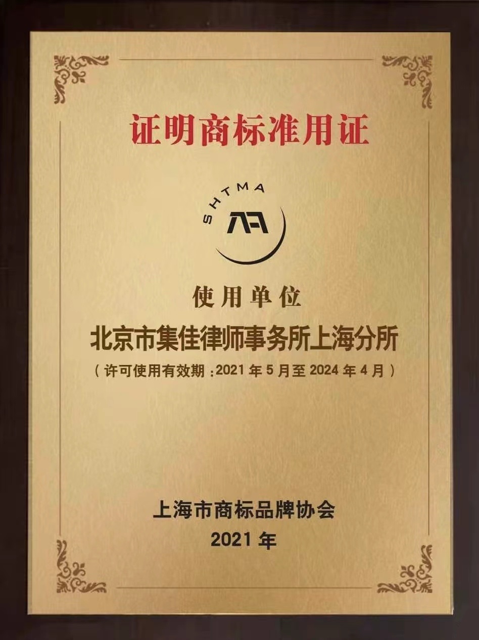 為規范商標代理行業管理,解決商標代理市場存在的一系列不規范行為,協會依托市場監管部門,制定了上海商標代理行業服務規范的地方標準,旨在凈化上海商標代理市場的環境,促進上海商標代理機構不斷提升誠信度和美譽度。達到標準的商標代理機構通過許可,方可獲得《證明商標準用證》。集佳上海分所作為達標代理機構之一,此前已獲得《證明商標準用證》。