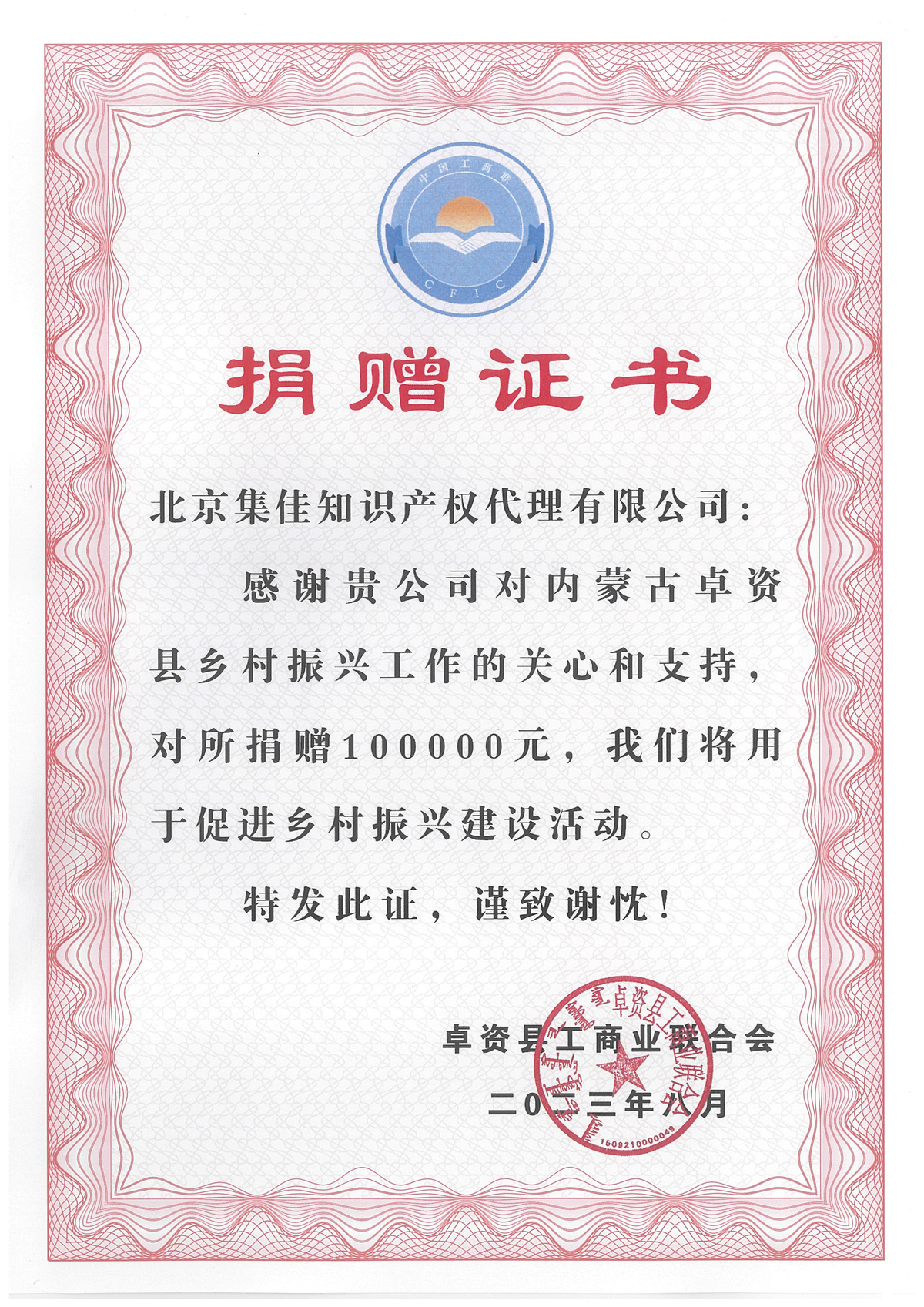 作為民營企業(yè)標桿,集佳始終不忘初心,自覺承擔各項社會責任,用實際行動踐行企業(yè)擔當。在助力鄉(xiāng)村振興、共同富裕的道路上,多年來,集佳積極響應國家政策,持續(xù)貢獻企業(yè)力量,累計捐款530余萬元參與了河北崇禮、湖南桑植、廣西馬山、內蒙科左后旗和卓資縣等地的幫扶建設,并取得了良好成效。未來,集佳將開展更多公益活動,并積極依托專業(yè)優(yōu)勢,發(fā)揮知識產權力量更好地助力鄉(xiāng)村振興建設,通過專業(yè)的知識產權服務回饋國家和社會。
