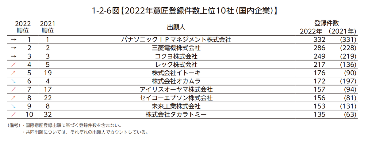 前10大日本國(guó)內(nèi)企業(yè)外觀設(shè)計(jì)注冊(cè)量: