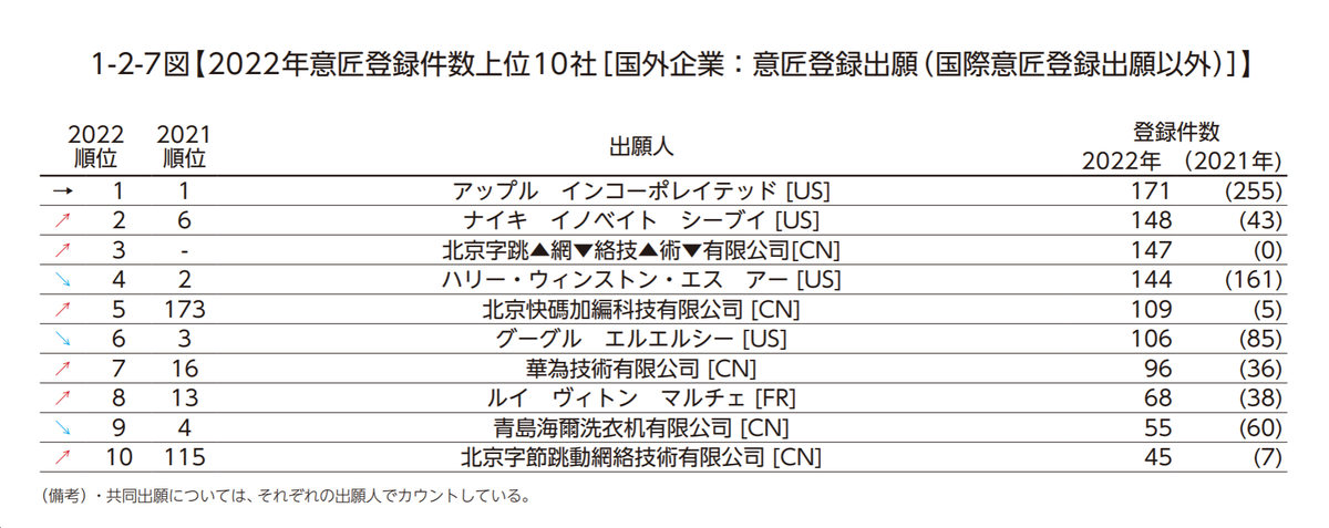 前10大日本境外企業(yè)外觀設(shè)計(jì)注冊(cè)量: