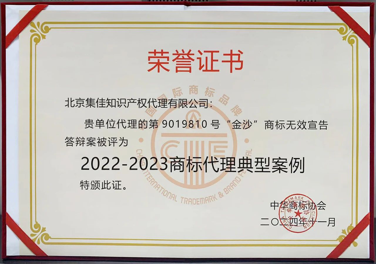 集佳代理的“金沙”商標權無效宣告答辯案入選“2022-2023商標代理典型案例”