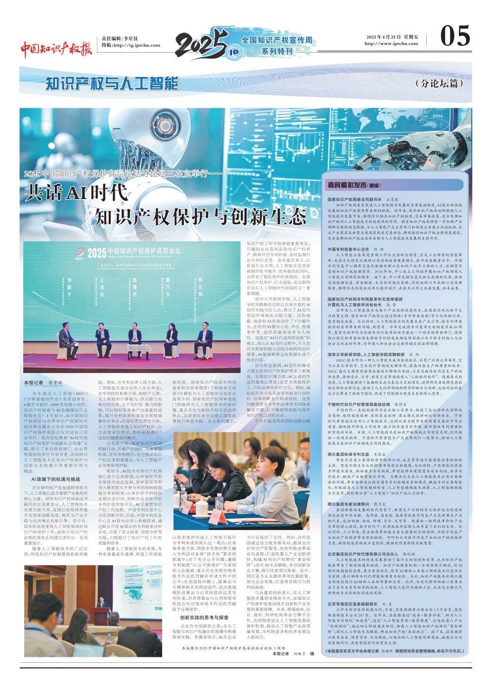 集佳合伙人郭化雨應邀參會,在“AI時代知識產權保護與創新生態構建”分論壇作主題演講并參加圓桌對話,與眾嘉賓共同探討人工智能技術在知識產權保護與創新生態構建中的重要作用與挑戰。