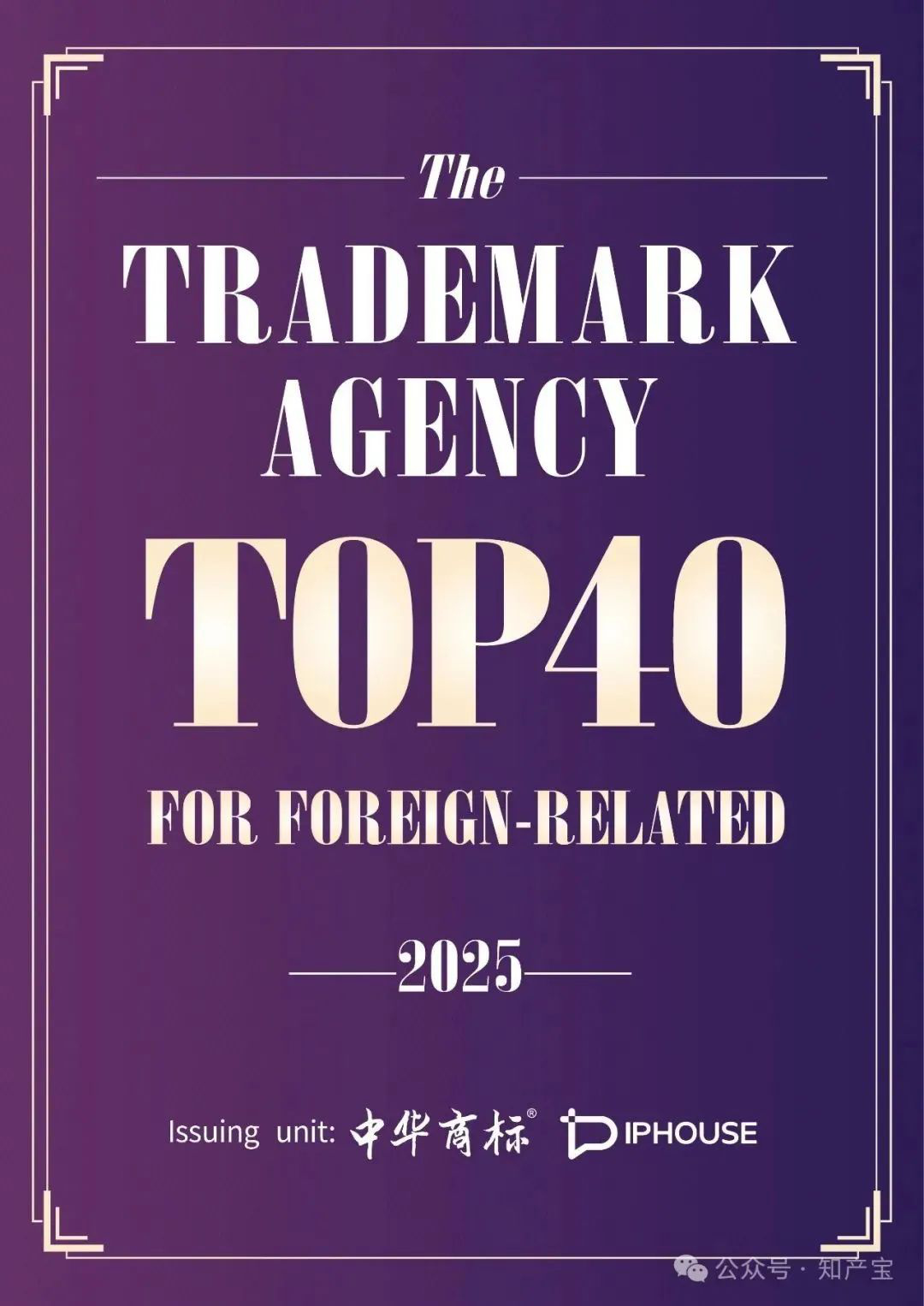 2025年5月19日(美西時間),在美國圣迭戈會議中心舉辦的第147屆INTA中華商標協(xié)會論壇上發(fā)布了《中國涉外商標代理機構服務能力數(shù)據(jù)統(tǒng)計40》,該榜單是在中華商標協(xié)會指導下,由《中華商標》雜志社和知產寶聯(lián)合發(fā)布。集佳憑借在涉外商標代理領域的杰出實力與良好口碑,再次榮登TOP40榜單!